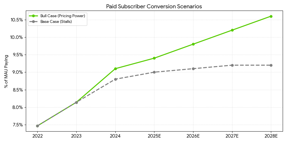 - The monetization headroom is massive: The Bull Case model shows what happens if conversion hits just 10-12%. That is a conservative ceiling. If they unlock "B2B" (Schools/Universities) or "Family Plans" at scale, they could double revenue without adding a single new user.