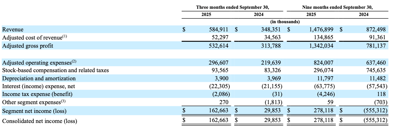 In the first nine months of 2025, the split was $1.37B from advertising and $104M from “other revenue” (data licensing). Total revenue hit $1.48B, a massive 68% increase over the same period in 2024.